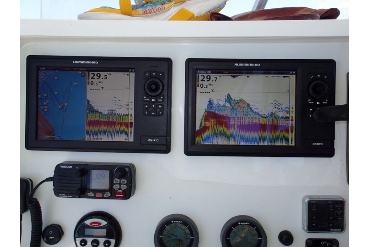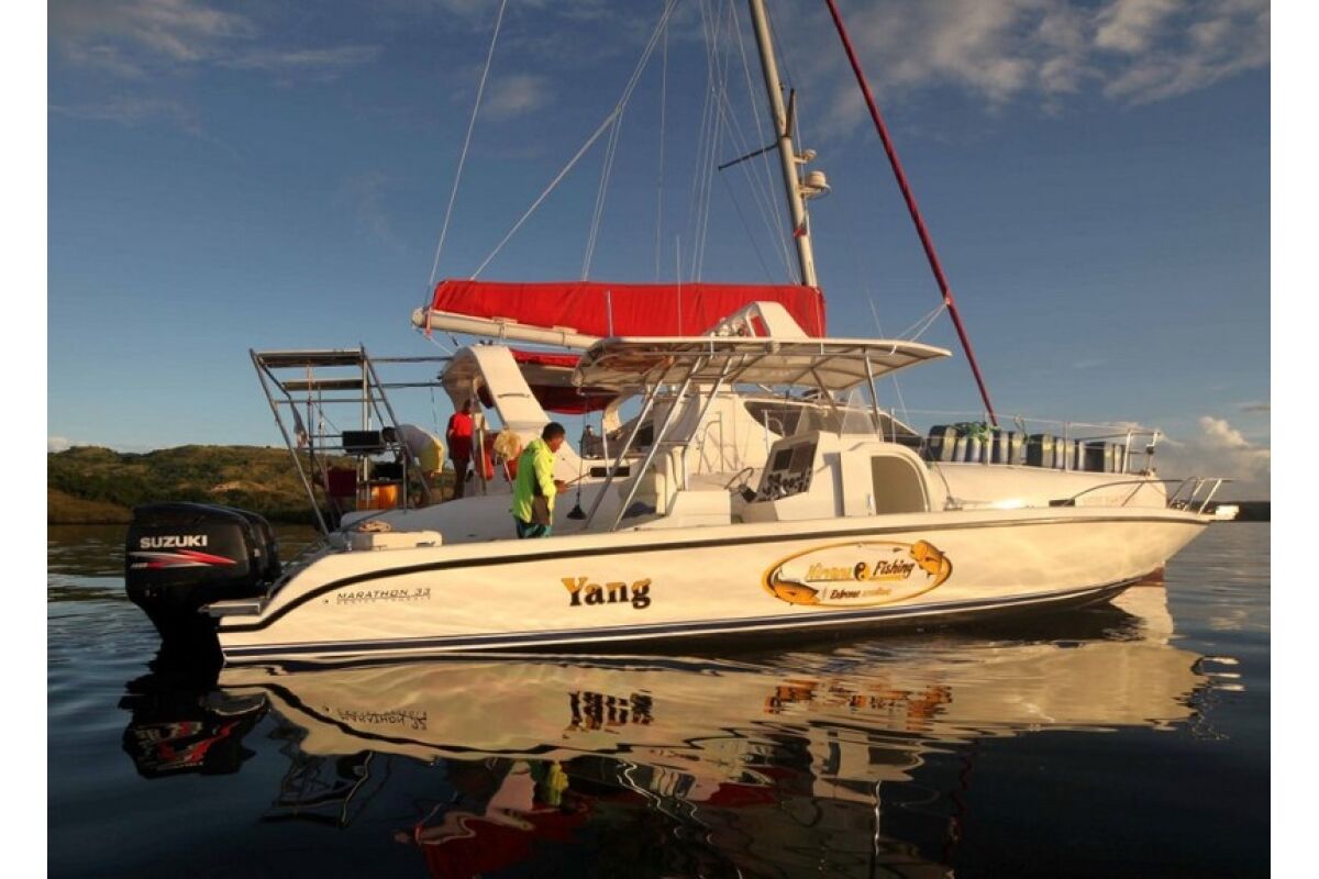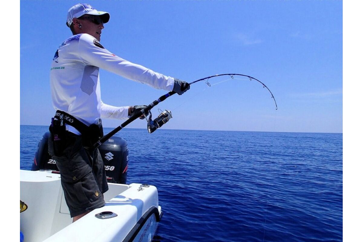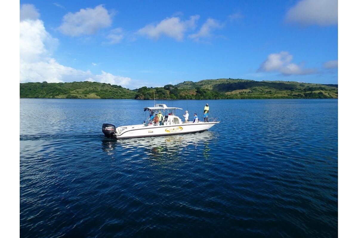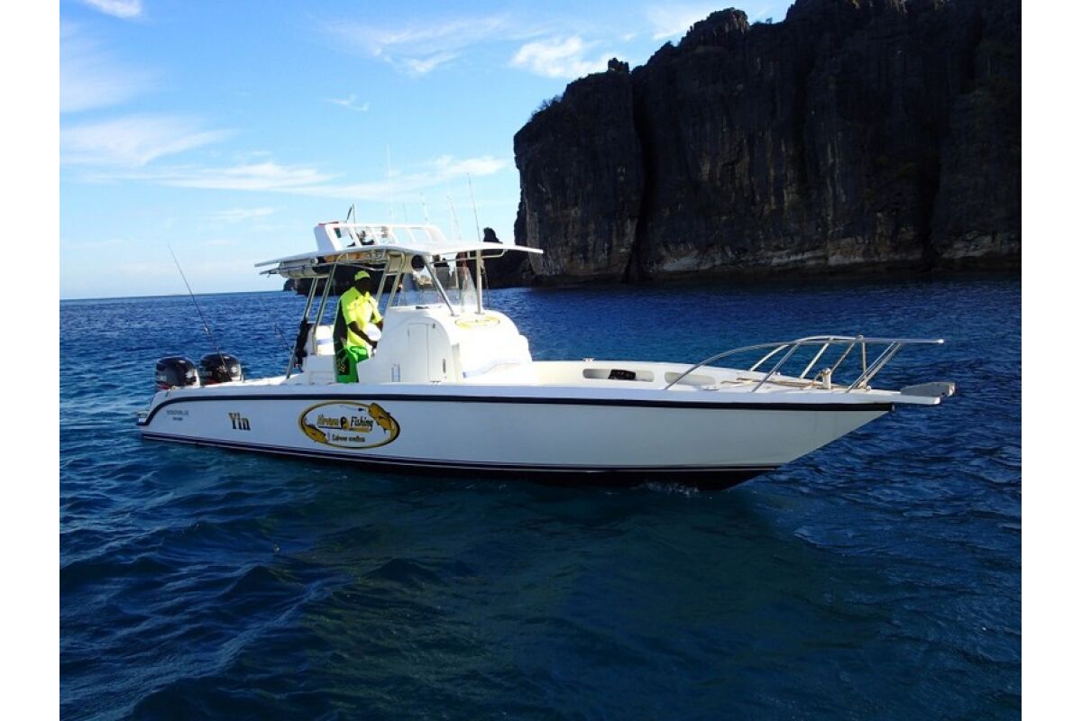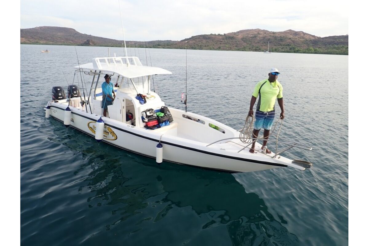 • Sportvissen in moderne en snelle boot, dubbele motoren SUZUKI 250 cv, met bemanning (schipper-gids en stuurman) en brandstof.