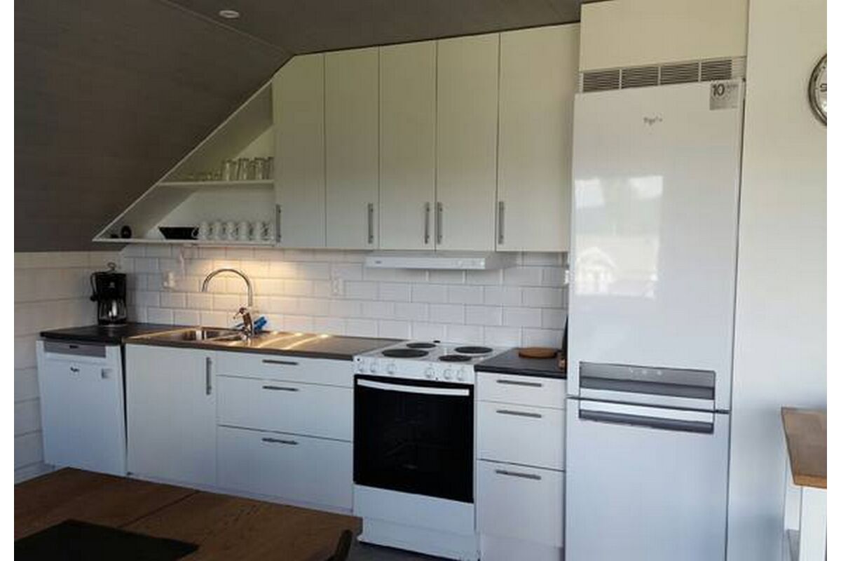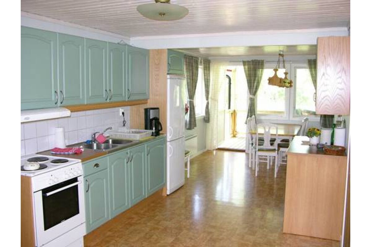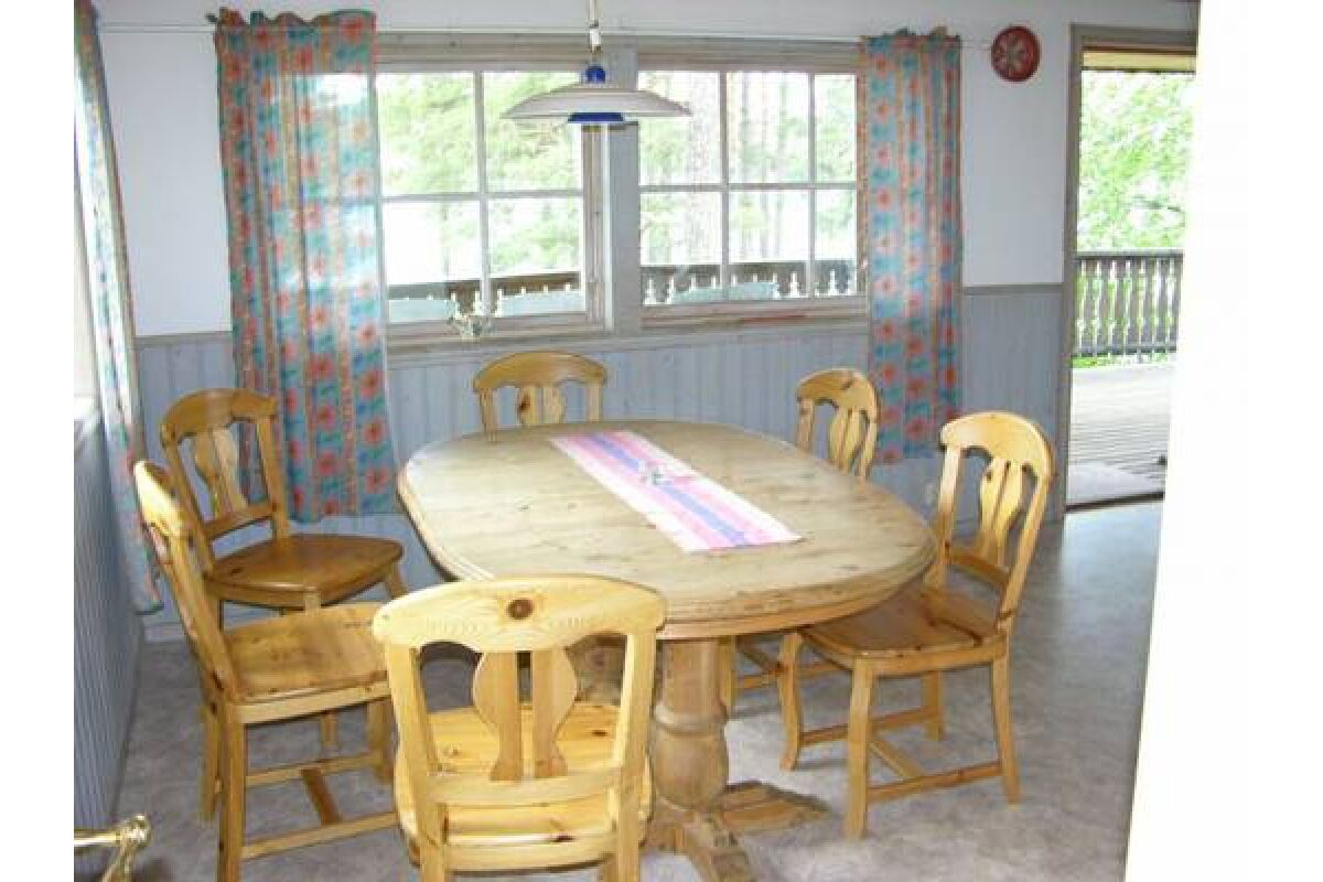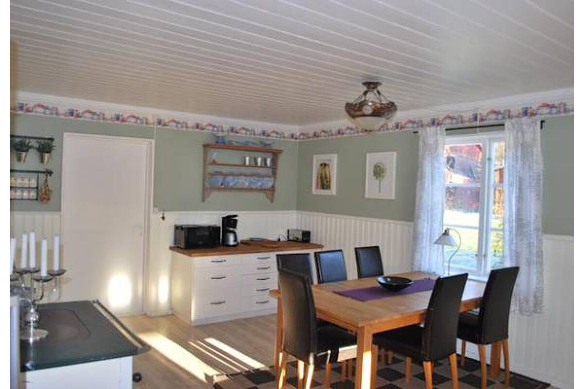 Een typisch Zweeds huis van 65 m2 met veel hout en dito karakter. Het beschikt over een grote woonkeuken en eetruimte, woonkamer met ruime bank, TV en open haard. Er is een badkamer met douche en toilet. Op de bovenverdieping zijn twee slaapkamers waarvan 1 met een Frans dubbelbed en 1 met twee eenpersoonsbedden. De afstand tot het water bedraagt 100 meter.