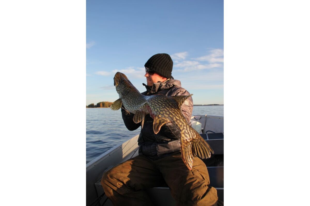 Voor de snoekvisser is het hier een waar paradijs. Rond de ontelbare eilandjes en baaien met grote wier- en leliebedden kun je de snoek praktisch ruiken! Het snoekseizoen begint half april en eindigt in november en de kans op de echte grote groenjassen is het grootst in het voor- en najaar. Vooral het gebied rond de camping staat bekend om zijn grote formaat snoeken, vissen van 1 meter plus zijn hier dan ook geen uitzondering. Slepen met pluggen is favoriet bij de lokale bevolking maar ook het werpen met jerkbaits is in opkomst. Daarnaast is de snoek ook hier natuurlijk erg goed te vangen met een getakelde vette aasvis. De allround kunstaasvisser kan zich hier helemaal uitleven: je kunt met pluggen slepend van stek naar stek, onderweg bij een plantenbed laat je je jerkbait even te water en kom je boven een mooi diep gat dan laat je even je shadje naar beneden glijden.