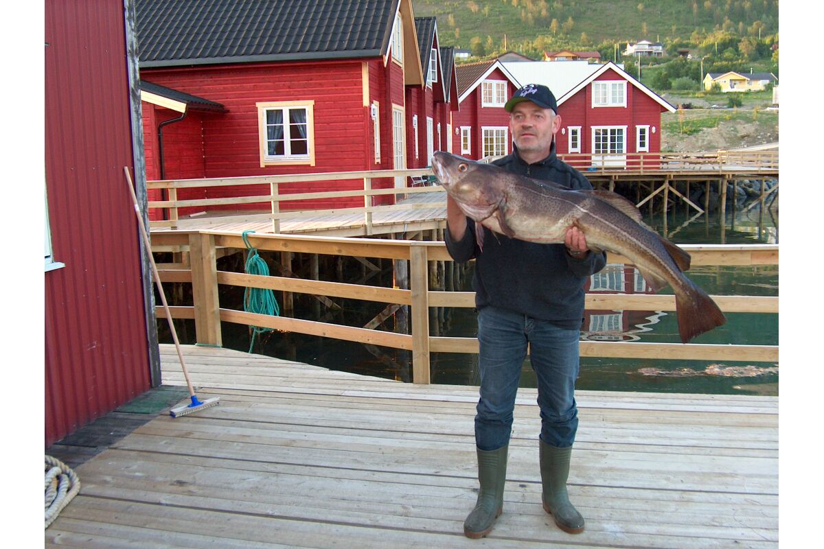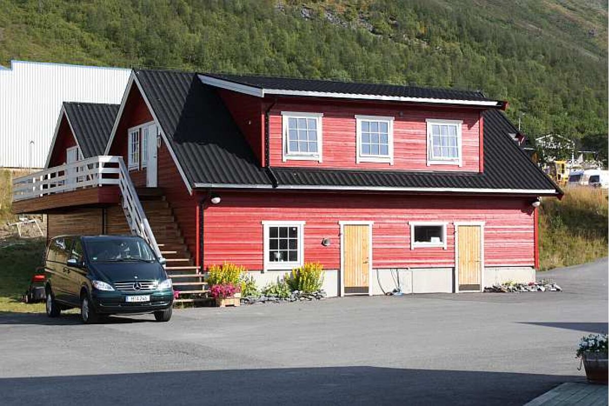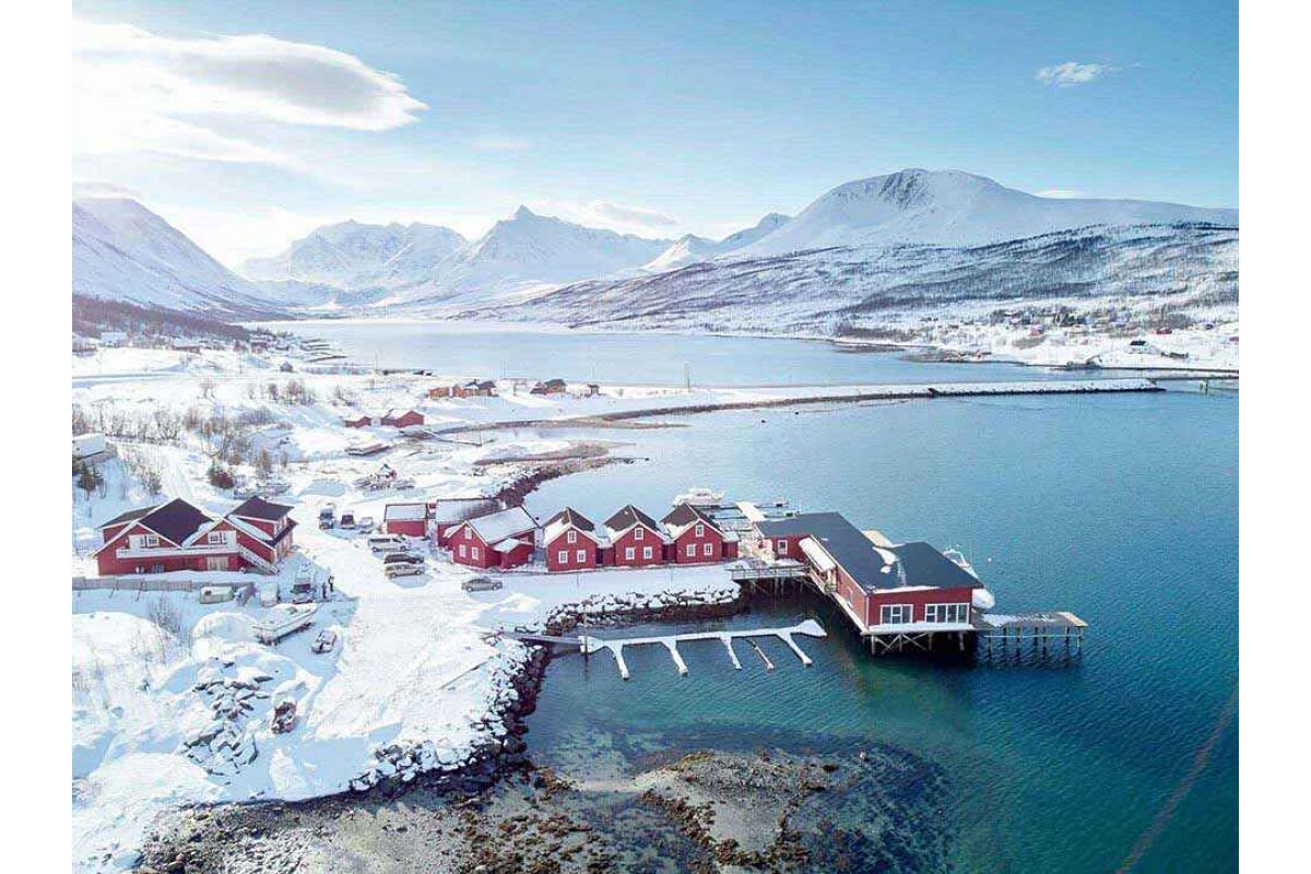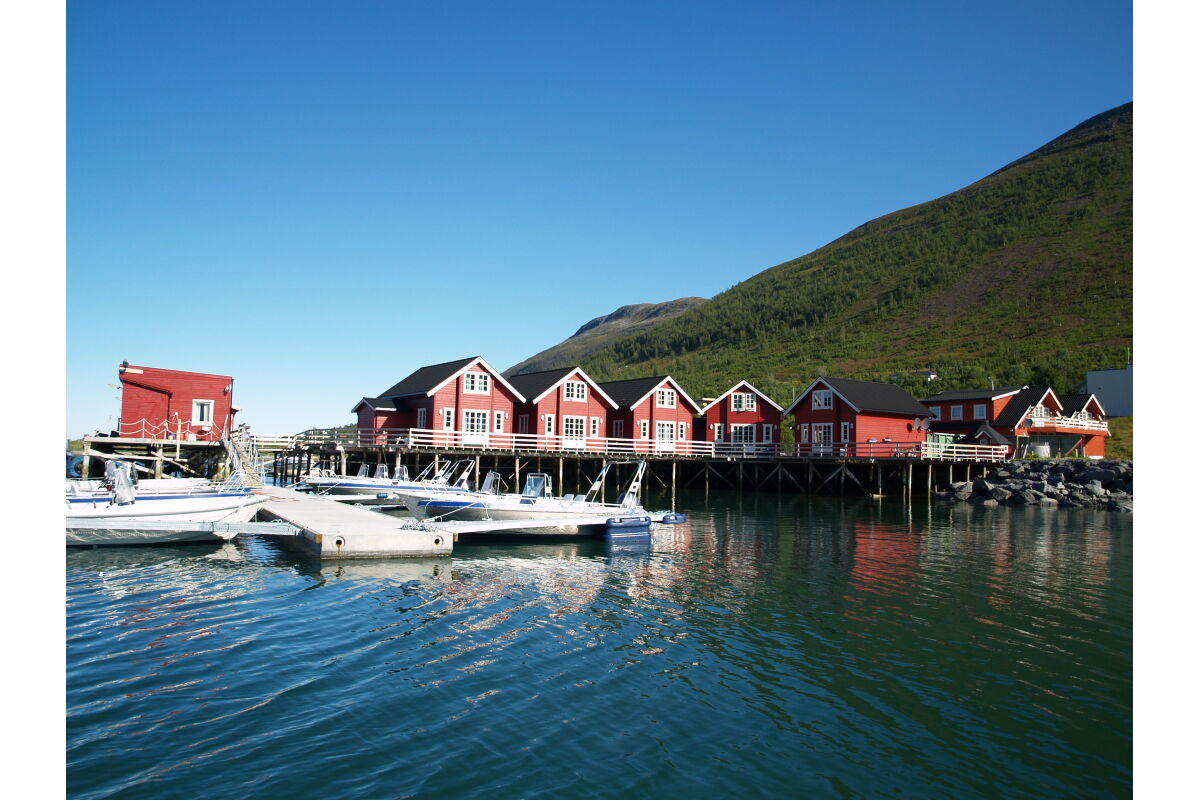 Het viscamp bevindt zich op slechts 1,5 uur rijden van de luchthaven van Tromso. De woningen liggen direct aan het water en kijken uit over de Nordlenagfjord. Achter het viscamp ligt de weg gevolgd door een imposante bergketen terwijl aan de voorzijde een vrij uitzicht is en je direct al kunt vissen. Je bevindt je hier in een subliem visgebied waar aan het directe uiteinde van de fjord de watermassa’s zich mengen tijdens eb en vloed. Het is in deze stromingen dat er gejaagd wordt door de verschillende vissoorten. Op enkele minuten varen vindt je het bekende heilbot en kabeljauw mekka’s rondom de eilanden Vannøya, Arnøya und Fugløya met daarachter direct de Noord-Atlantische zee.