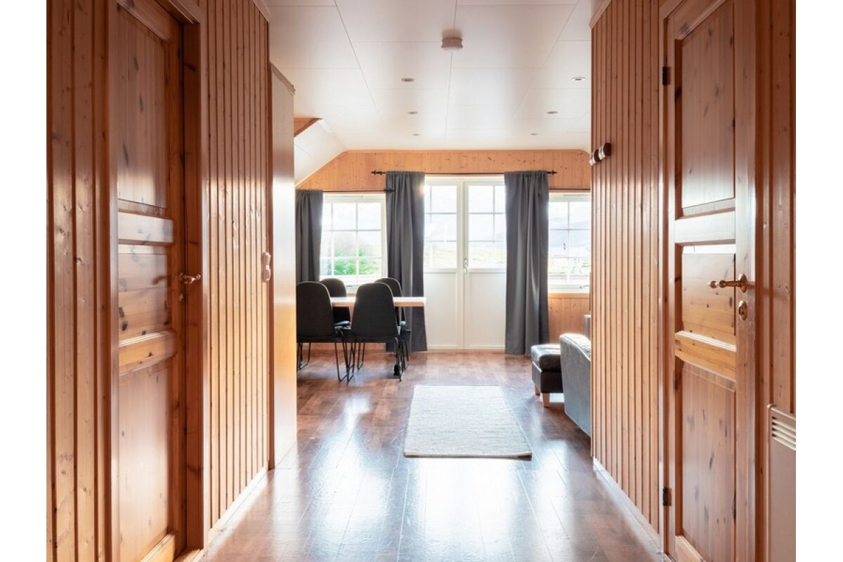 Er zijn 5 woningen op palen over het water gebouwd en comfortabel ingericht. In totaal bieden de woningen 50 m2 woonoppervlak en een fantastisch uitzicht over de Nordlenangenfjord. De woningen zijn modern ingericht en hebben een woonkamer met TV, een volledig ingerichte keuken met vaatwasser, oven, 4 pits fornuis, koffiezetter en waterkoker. Naast de ingang is een kleine schuur met vriezer en waar vismaterialen en overalls droog kunnen worden weggezet en is ook de toegang tot het terras. Op de eerste verdieping zijn 3 slaapkamers met elk 2 eenpersoonsbedden als ook de badkamer met douche en toilet. De woningen zijn dus geschikt voor maximaal 6 personen. En de bedden zijn inclusief bedlinnen en twee handdoeken per persoon.
