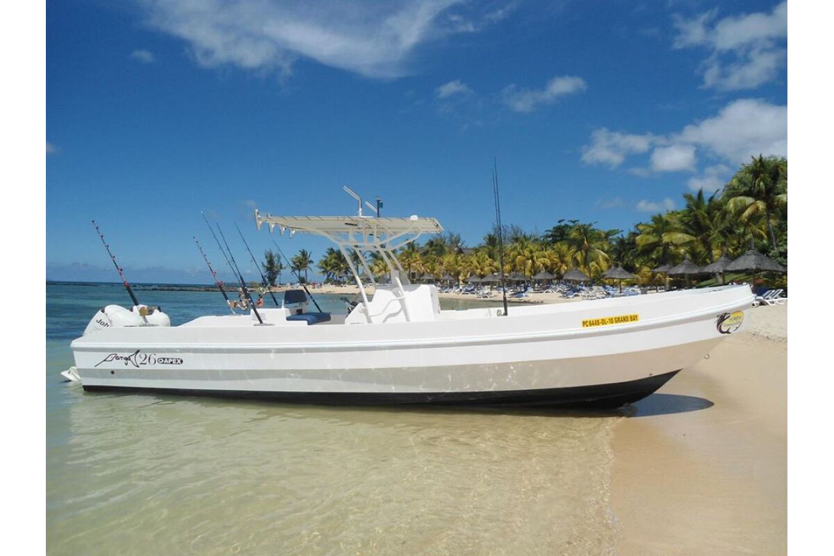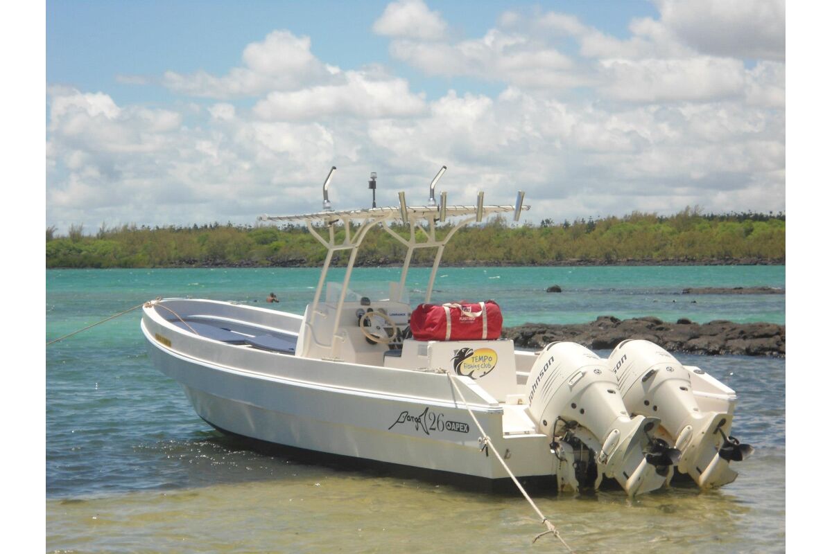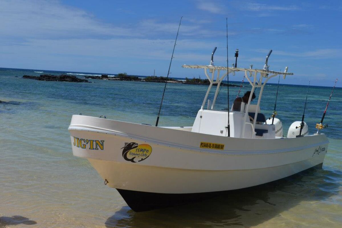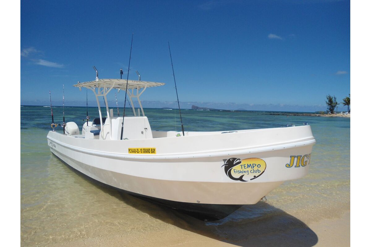De boot, genaamd “Jig’in” is een 26 voet open panga die ruimte biedt aan maximaal 4 vissers. Hij wordt aangedreven door twee 115 PK buitenboord motoren. Hij is op maat gemaakt en de enige boot in zijn soort op Mauritius. De boot voldoet aan de Europese en ISO standaarden.