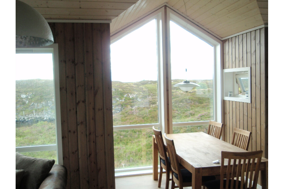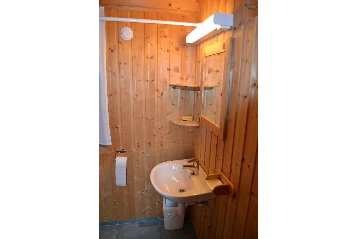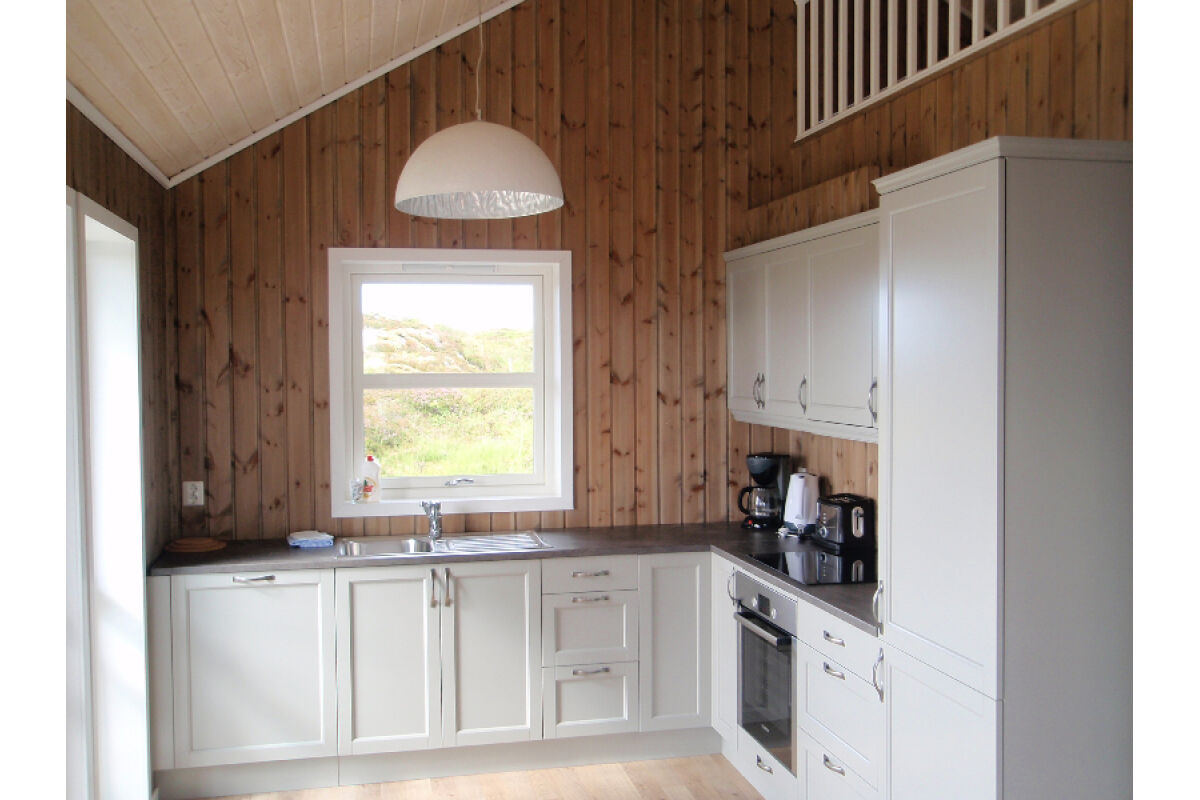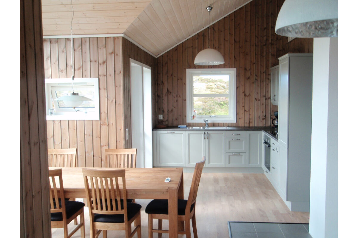 Dit zijn de ruimste woningen. Op de begane grond vindt u de badkamer met douche en toilet, de woon- en eetkamer met TV en een volledig ingerichte keuken met vaatwasser en een opslagruimte met vriezer. De woonkamer heeft een groot raam in de gevel met een prachtig uitzicht over de fjord. Op de bovenverdieping zijn er drie slaapkamers waarvan 1 met balkon. Deze woningen zijn geschikt voor 6-8 personen.
