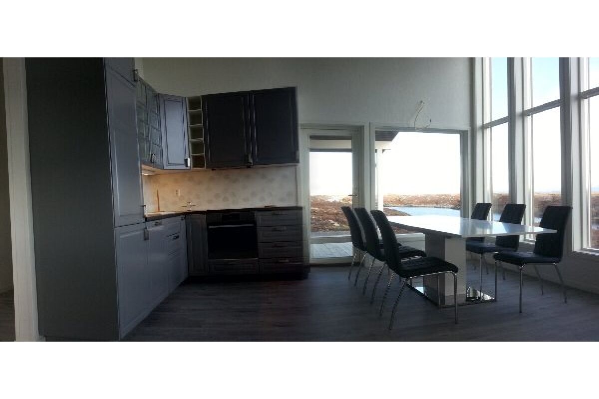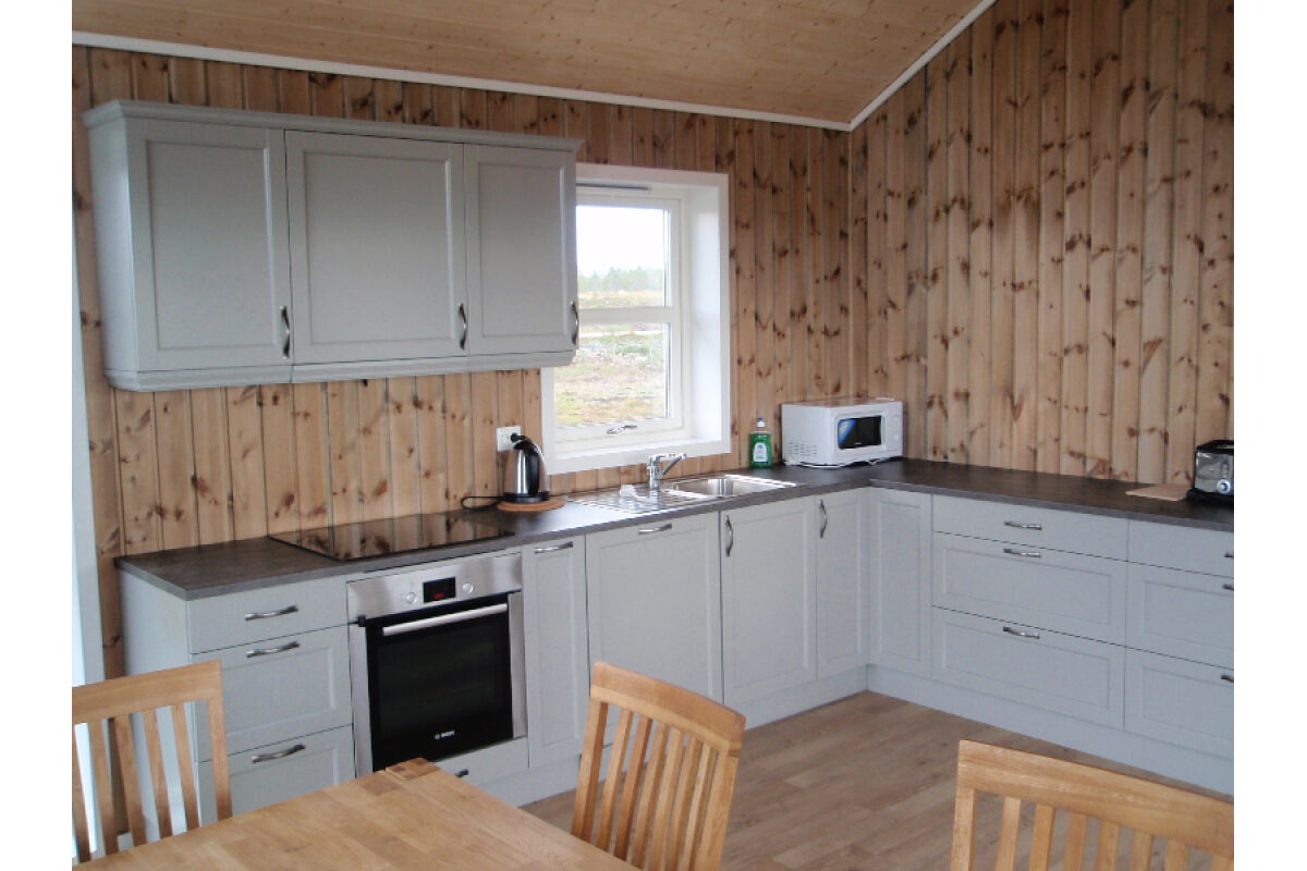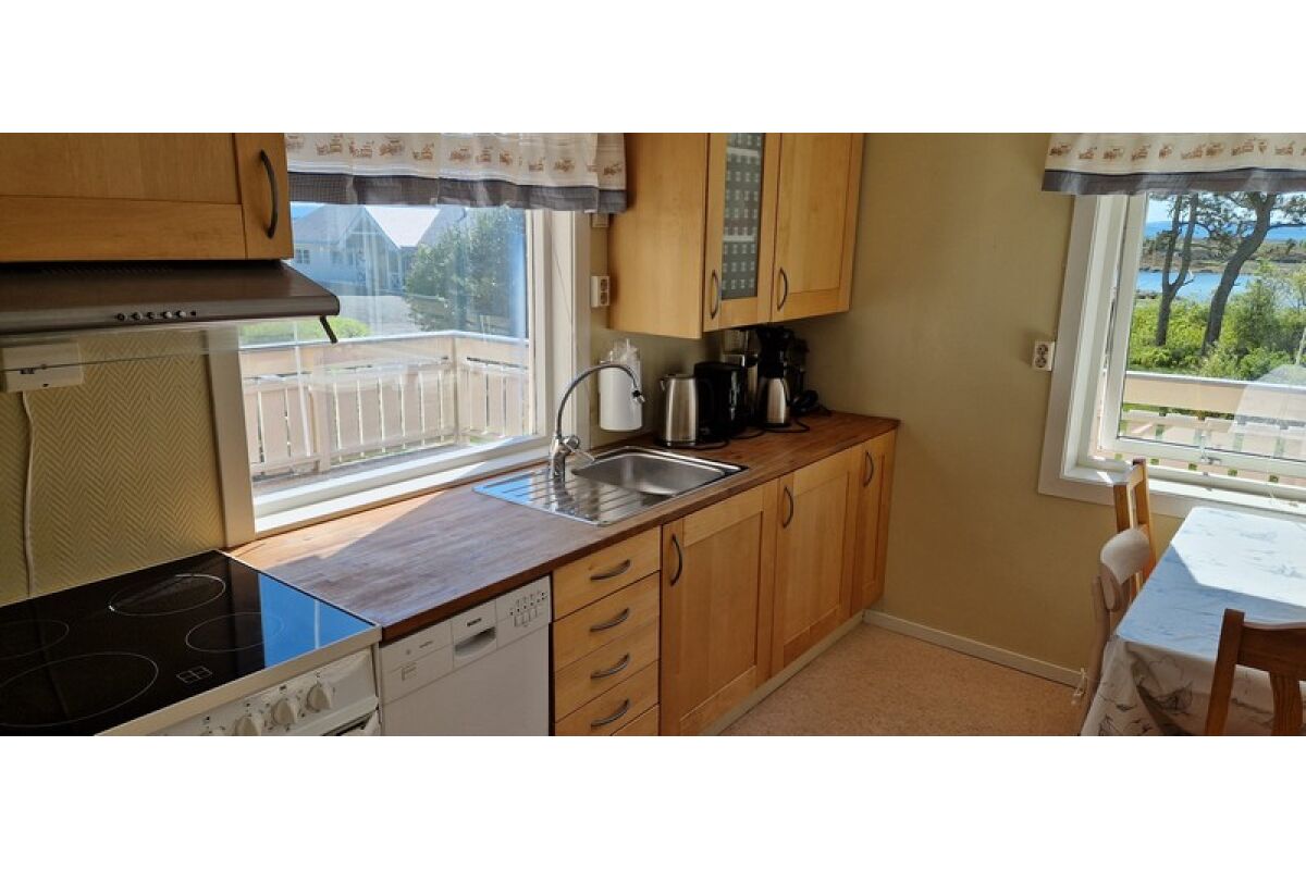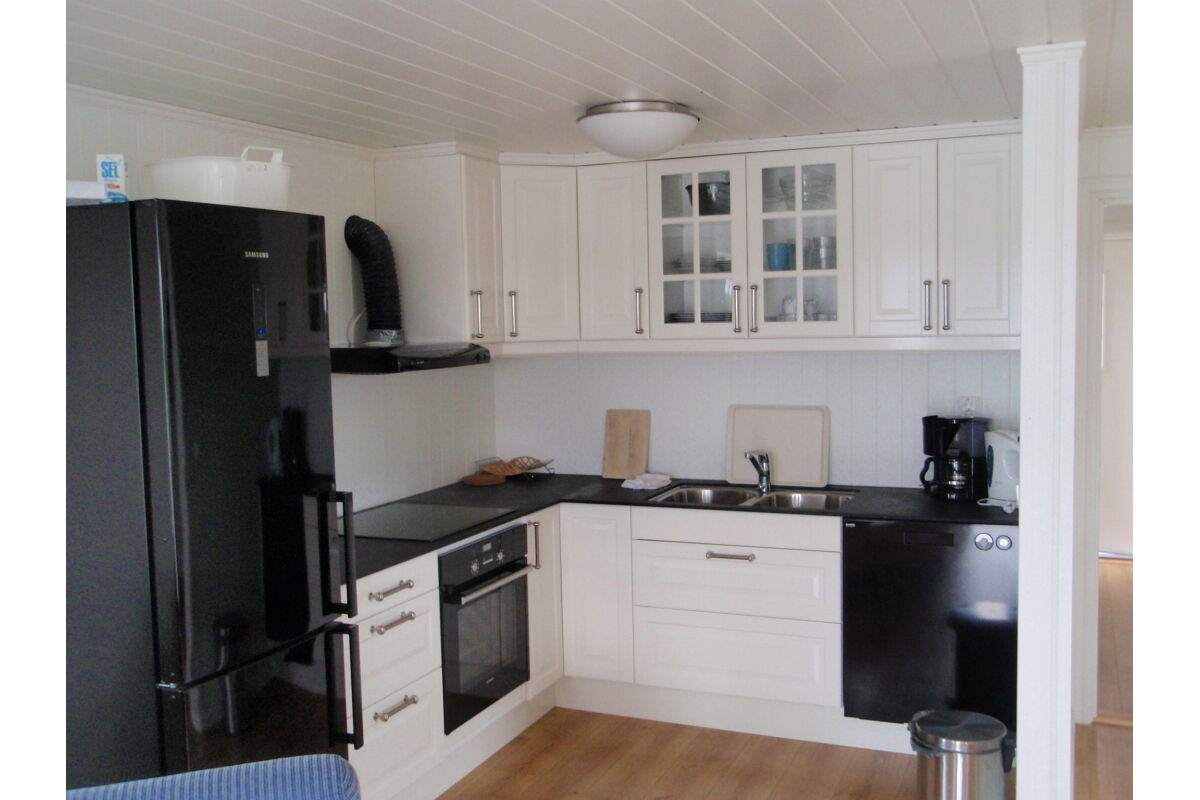 Dit zijn de ruimste woningen. Op de begane grond vindt u de badkamer met douche en toilet, de woon- en eetkamer met TV en een volledig ingerichte keuken met vaatwasser en een opslagruimte met vriezer. De woonkamer heeft een groot raam in de gevel met een prachtig uitzicht over de fjord. Op de bovenverdieping zijn er drie slaapkamers waarvan 1 met balkon. Deze woningen zijn geschikt voor 6-8 personen.