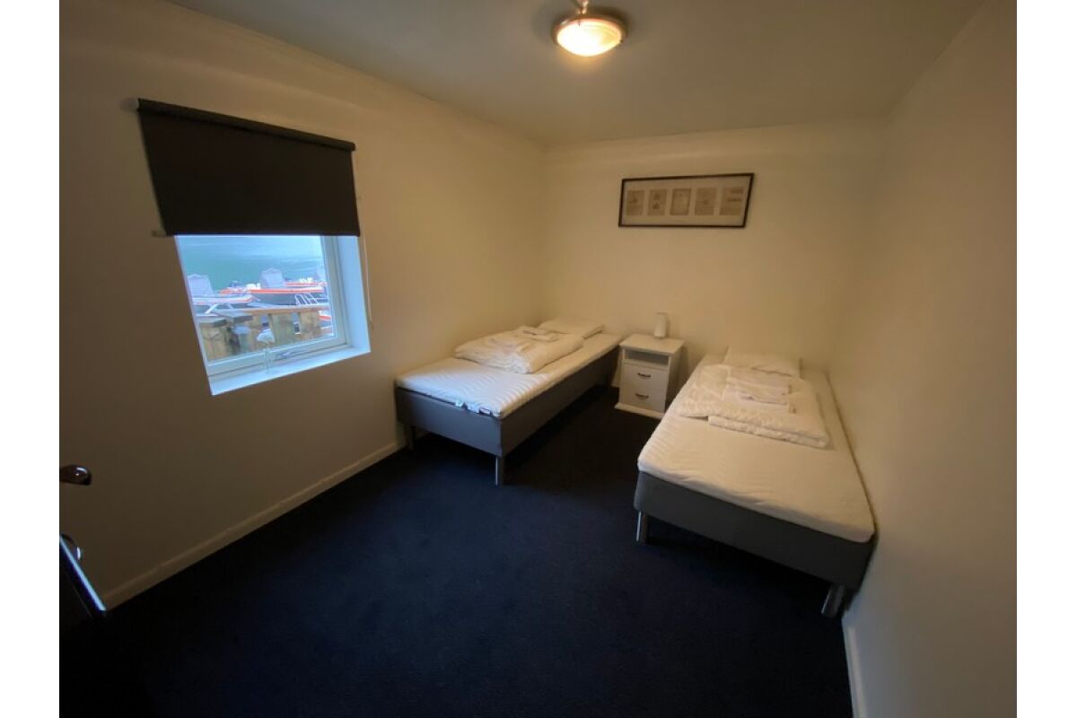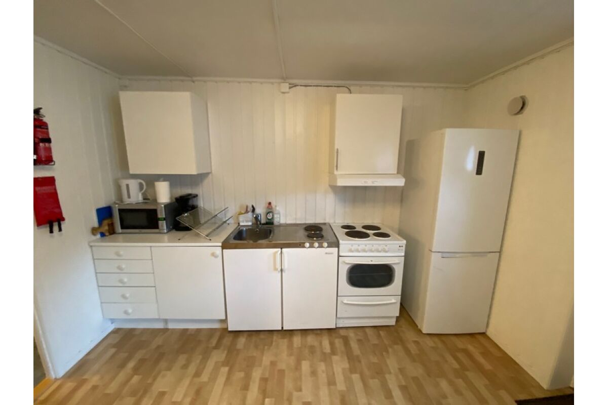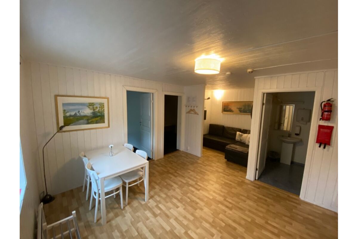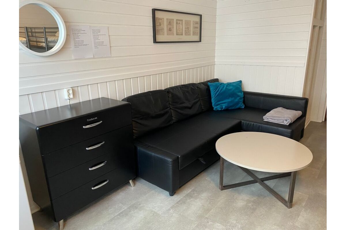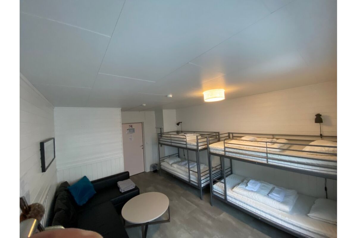 De zeven studios bevinden zich op de tweede verdieping van het hoofdgebouw. Ze hebben allemaal 4 comfortabele slaapplaatsen in 2 stapelbedden en een bank die eventueel uitgeklapt kan worden tot een extra bed. Ze zijn uitgerust met geluidsdichte deuren naar de gang, goede gordijnen tegen de middernachtszon, een salontafel en een kleine koelkast.