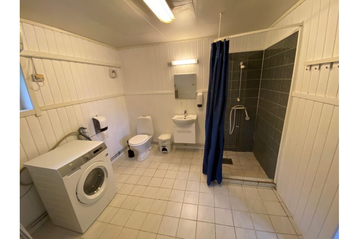 Gasten die in de studios verblijven delen twee toiletten met douches op de gang. Er is ook een apart toilet in verbinding met de keuken en het eetgedeelte. De gedeelde keuken heeft drie aparte kookgedeeltes met fornuis, oven en gootsteen. De keuken is ook uitgerust met een koelkast, magnetron en een koffiezetapparaat.