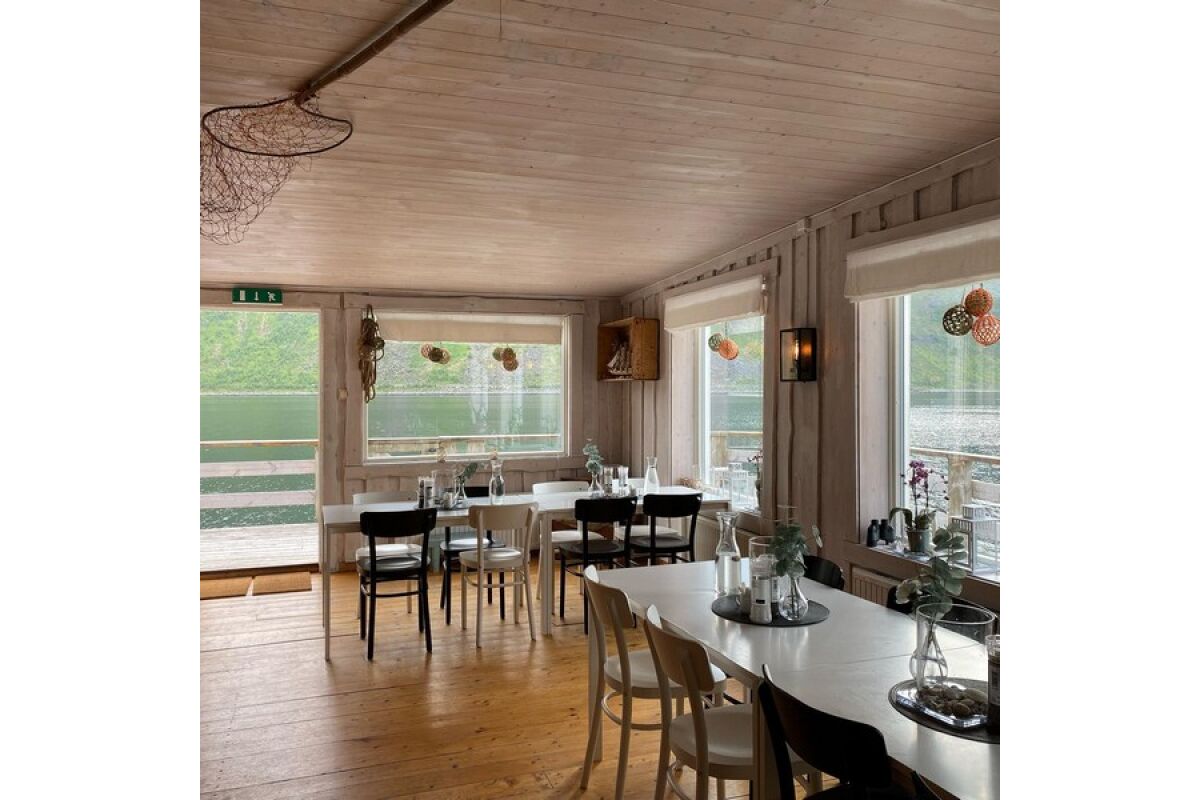 Het restaurant is onlangs gerenoveerd. Het biedt plaats aan 65 personen en heeft een prachtig uitzicht over Steinfjorden. Het restaurant is zeven dagen per week geopend voor lunch en diner. De chefs gebruiken verse en lokale producten en het menu verandert regelmatig. Dit is de ideale plek om een geweldige visdag af te sluiten dan met een drankje en lekker eten in het gezelschap van vrienden? Minimaal een keer per maand is er ook een avond met entertainment op Camp Steinfjord. Hier kan je genieten van muziek, lokale specialiteiten, dranken en entertainment. Het restaurant is gedurende het zomerseizoen alle dagen open en voor vissersgasten zijn er ook buiten het seizoen om voor groepen half of vol pension te verzorgen.