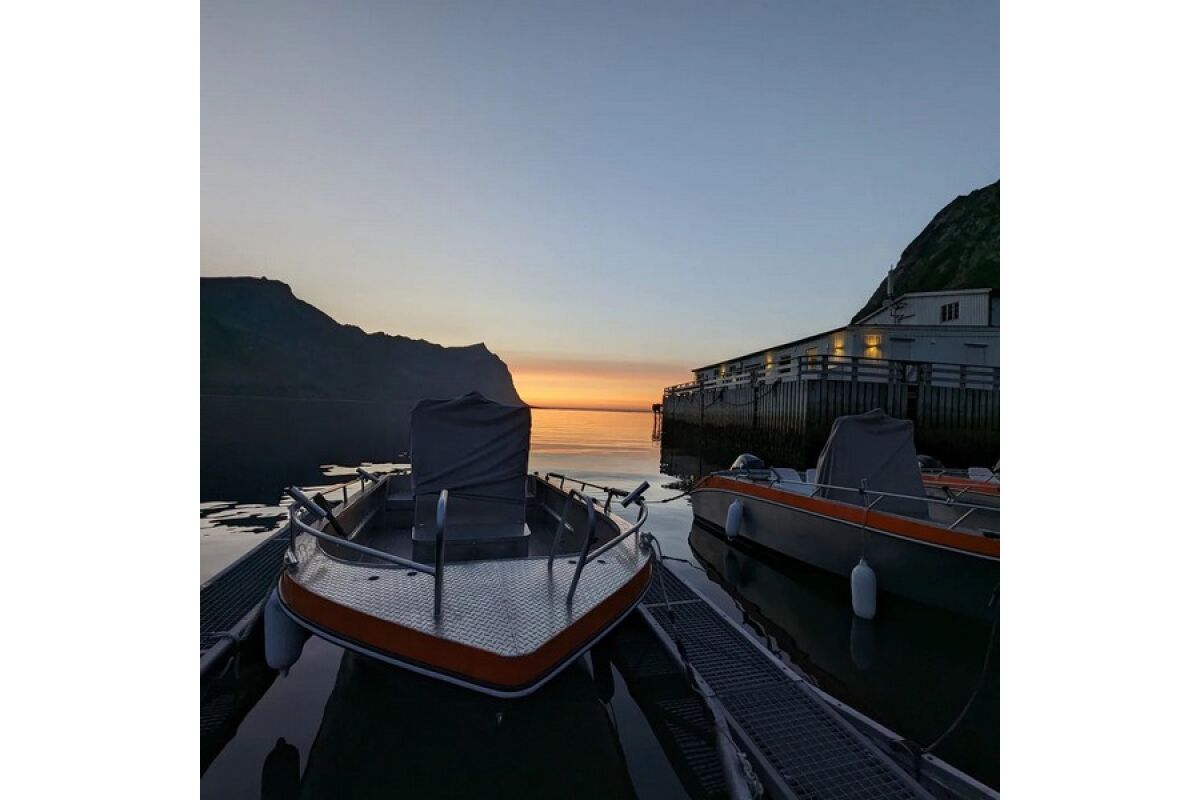 1. De 20 voet (6,15 meter) Kvaerno visboten zijn goede en veel gebruikte boten voor de visserij in Noorwegen en zo ook hier. Ze hebben een Mercury Sea Pro buitenboordmotor van 115 PK met marifoon, Lowrance elite ti2 fishfinder en kaartplotter combo. Van dit type boot zijn er 10 beschikbaar.