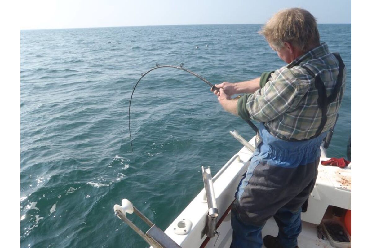 Het vissen op pollak vindt plaats op slechts enkele meters vanaf de kliffen waardoor je hier (bijna) altijd beschut kunt vissen en er praktisch geen dagen uitvallen. Een typische dag begint met het vangen van makrelen om voldoende aas aan boord te hebben. Daarna wordt overgeschakeld op de garnalen paternoster om daarmee verse zandaal te vangen. Deze wordt als levend aas voor de pollak gebruikt. De keuze is nu aan jou om met een dobber of middels free-linen te gaan vissen op pollak. een gemiddelde dag brengt op de boot zo’n 100 + pollak voort dus het blijft werken met gemiddelde exemplaren tussen 2,5 en 5 kilo en uitschieters naar 8 a 9 kilo. deze vissen geven je een fantastisch gevecht en doen voor niets onder voor collega koolvis. De vreugde wordt verder verhoogd door gebruik te maken van een zeebaarshengel die nog meer actie oplevert. Op dezelfde locaties wordt ook koolvis, conger en lipvis gevangen. Vanzelfsprekend wordt de conger met een zwaardere set up bevist waar bij 20-30 lbs raadzaam is.